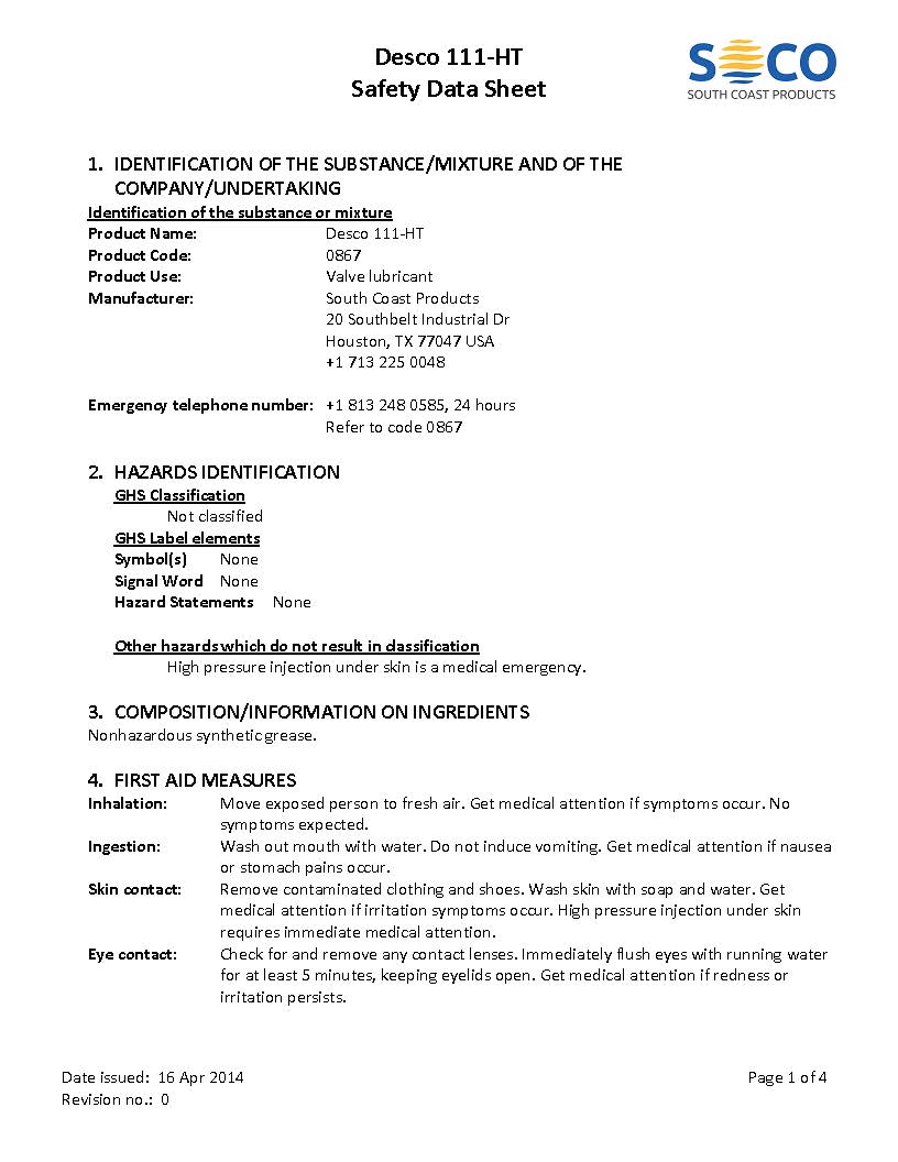 Desco 111 (HT) is a black, tacky grease designed for maximum hydrocarbon resistance at temperatures up to 350°F. Chemola™ Desco 111 (HT) is also highly resistant to H2S and sour