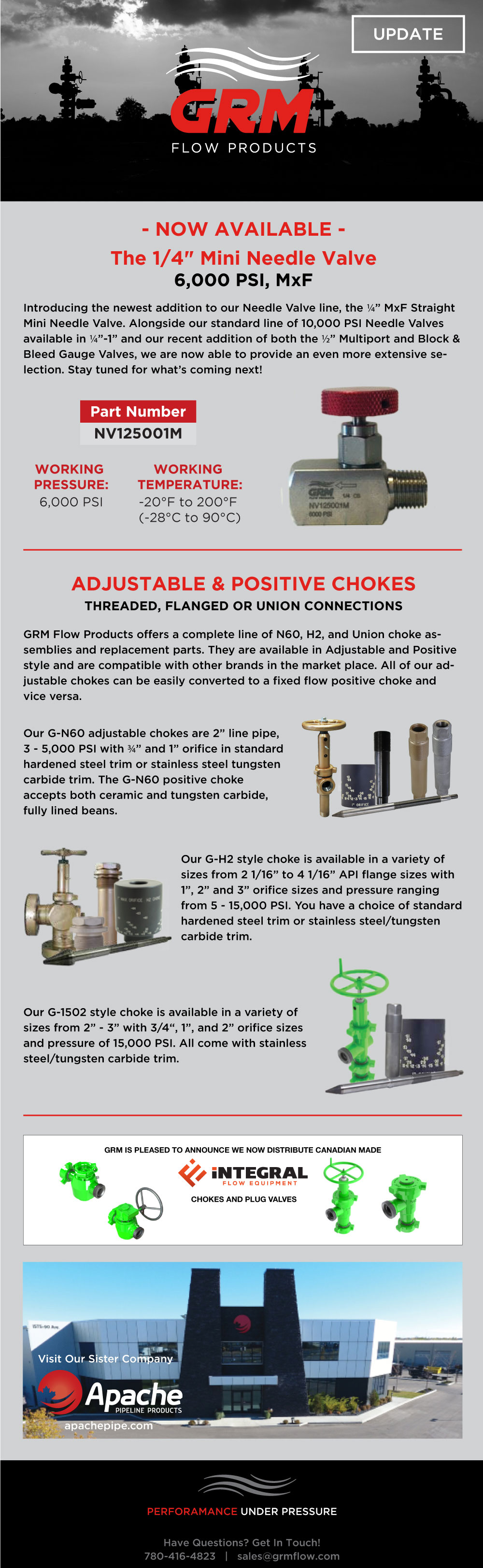 GRM Flow Products offers a complete line of N60, H2, and Union choke assemblies and replacement parts. Learn more here.