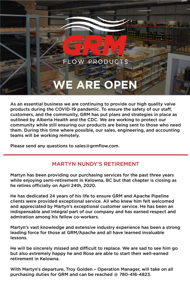 We’d also like to wish Martyn Nundy congratulations on his retirement! Martyn’s vast knowledge and extensive industry experience has been a strong leading force for those at GRM/Apache and all have learned invaluable lessons. He will be sincerely missed and difficult to replace. We are sad to see him go but also extremely happy he and Rose are able to start their well-earned retirement in Kelowna.