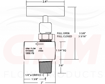 GRM offers globe style straight male x female, straight female x female, angled (90°) male x female, and angled (90°) female x female needle valves, available in hard seat and a 10,000 PSI rating with Viton® O-rings with a backup ring seal.