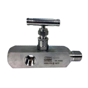 GRM offers globe style straight male x female, straight female x female, angled (90°) male x female, and angled (90°) female x female needle valves, available in hard seat and a 10,000 PSI rating with Viton® O-rings with a backup ring seal.